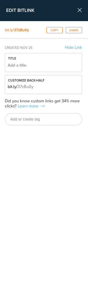 Shorten, create and share trusted, powerful links for your business. Bitly helps you maximize the impact of every digital initiative with industry-leading features like custom, branded domains. Try Bitly for free.