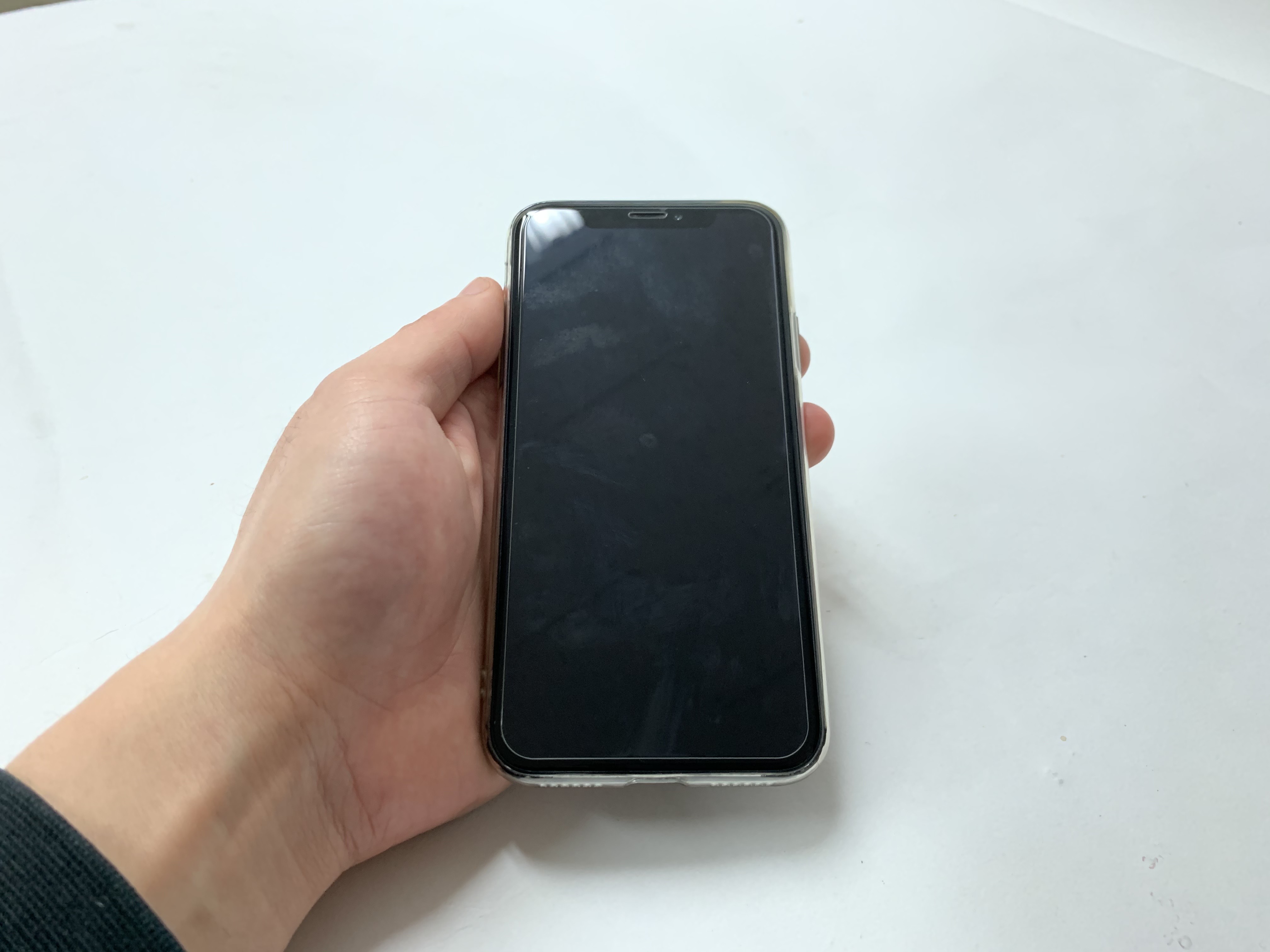 이제 필자와 지인의 휴대폰에 직접 케이스와 필름을 붙인 모습을 공개하겠다. 지인의 경우 아이폰 X 유저로서 풀커버가 아닌 일반 강화유리 필름을 구매했다. 가격대는 내가 구매한 게 아니라 잘 모르겠으나 아마 필자와 비슷한 가격대로 추정하고 있다.