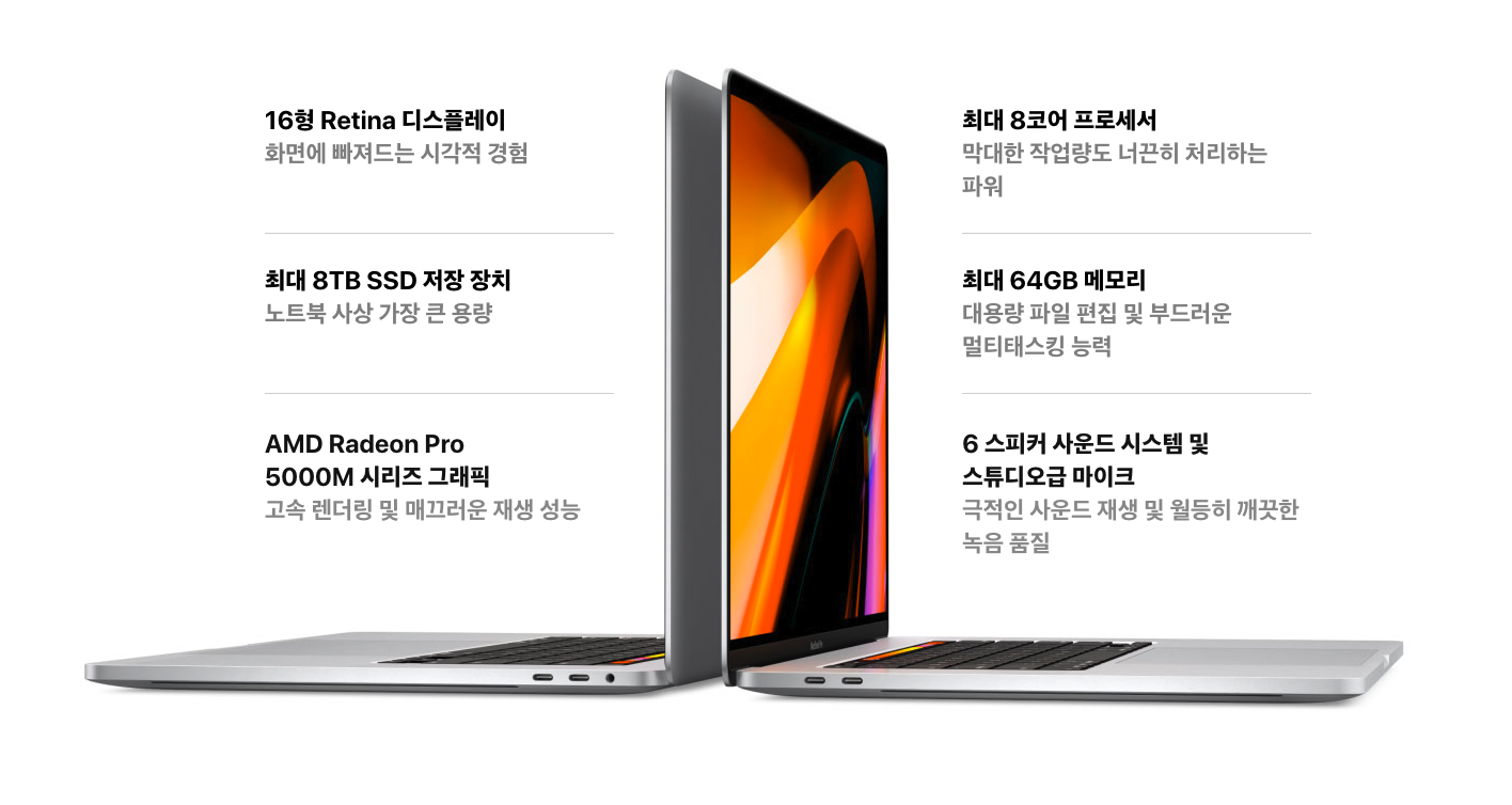 *(참고) 애플 맥북 프로 16인치 상세페이지 / 구입처 :: https://www.apple.com/kr/macbook-pro-16/
