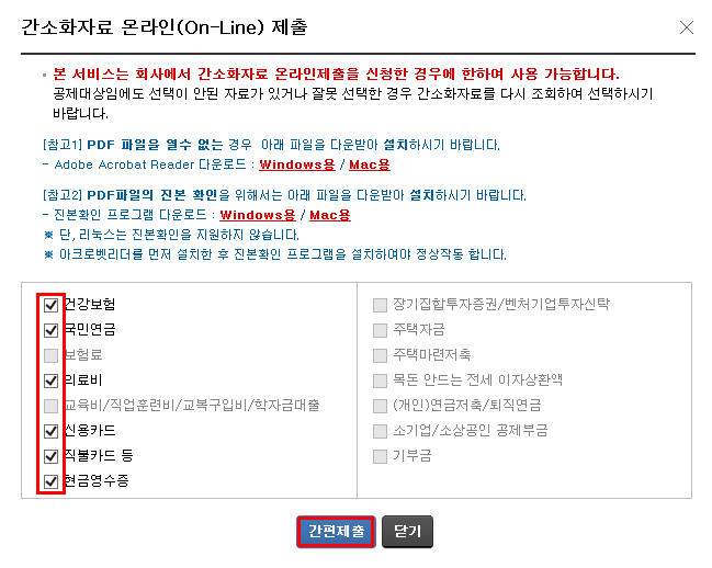 > 연말정산 간소화에 포함되지 않는 자료 및 누락된 자료를 증명서류와 함께 회사에 제출