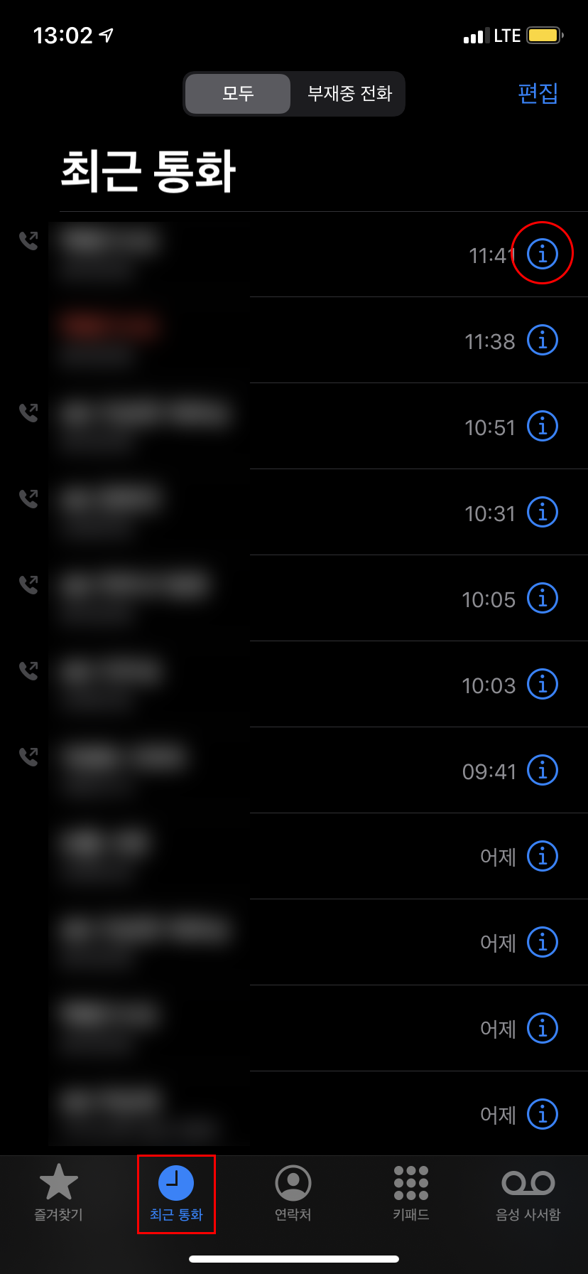 최근 통화 목록에서 내가 차단하고자 하는 전화번호를 살펴보고, 그 번호가 있다면 바로 우측에 느낌표 모양의 아이콘을 탭해주도록 하자. 그럼 해당 번호의 정보가 나오게 된다. 아래로 스크롤을 내리면 '이 발신자 차단'이라는 메뉴가 있다. 이것을 스근하게 탭해주면 해당 전화번호는 이제 영원히 전화를 못하게 될 것이다.