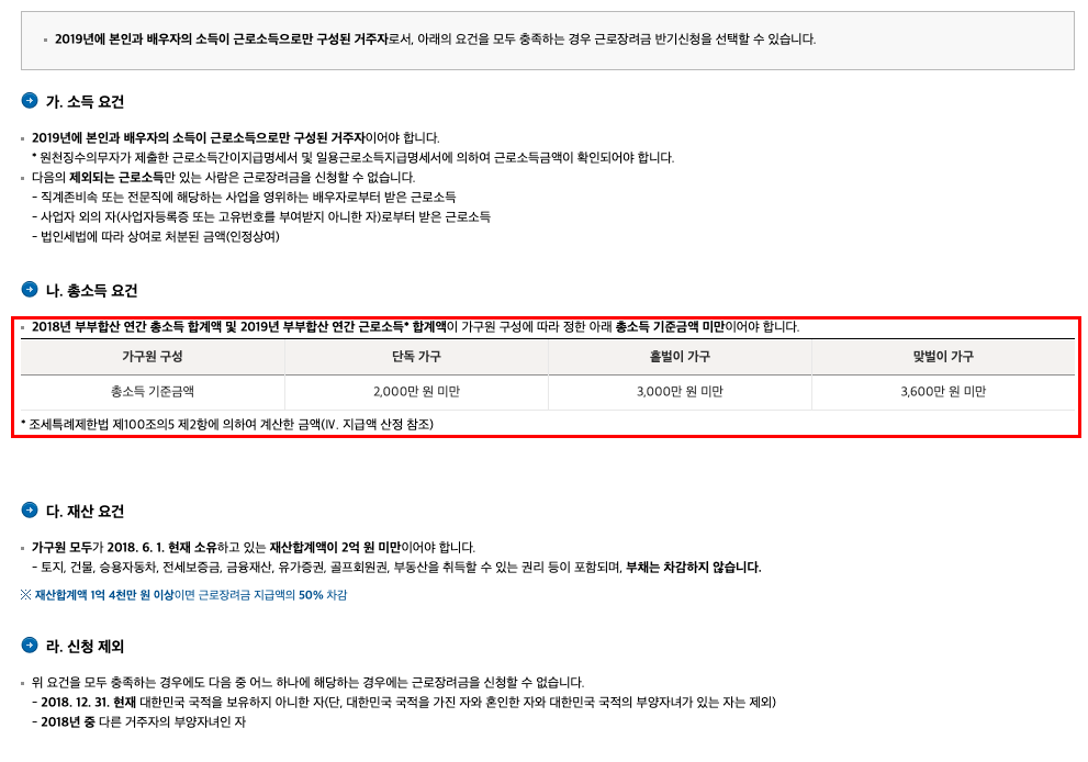 #4 근로장려금 자격요건은?