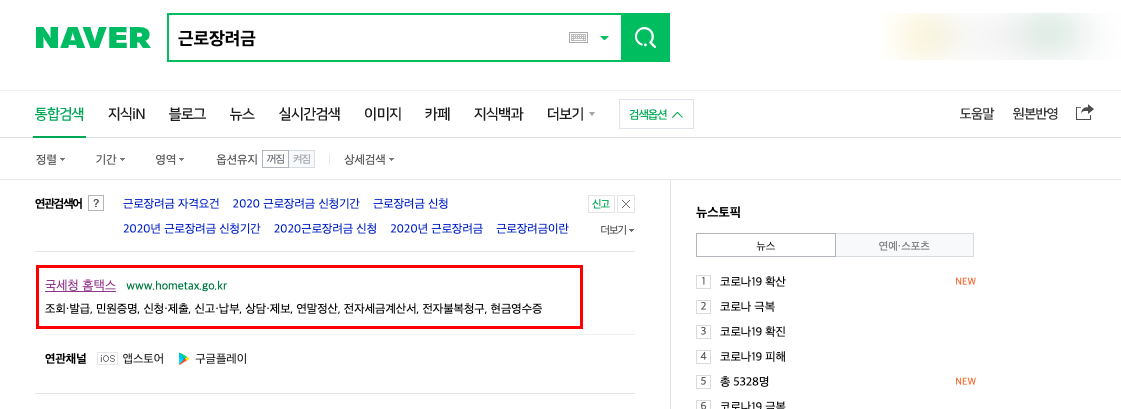 자! 그럼 이제 2020년 근로장려금 신청을 해보도록 하자. 일단 우리에게 굉장히 친숙하고, 또 영원한 동반자(?)라고 할 수 있는 국세청 홈텍스 홈페이지로 접속을 해야 한다. 검색창에 '홈텍스' 키워드 혹은 '근로장려금' 키워드를 검색하면 최상단에 홈텍스 홈페이지 주소가 등장한다. 해당 주소로 접속을 하도록 하자. 물론 필자가 친절하게 아래에 홈텍스 링크를 남겨두었으니 참고하기 바란다. (훗~!)