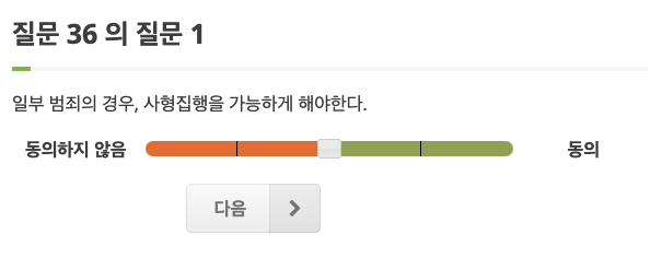 물론 위의 두 가지 성향에서 필자가 알고 있는 상식을 덧붙였기에 조금 정의와 다를 순 있다. 하지만 자신의 정치성향 테스트를 진행하고자 한다면 일단 두가지 개념을 어느 정도 이해를 하고 있어야 한다. 그럼 지금부터 본격적으로 검사를 진행해보도록 하자.