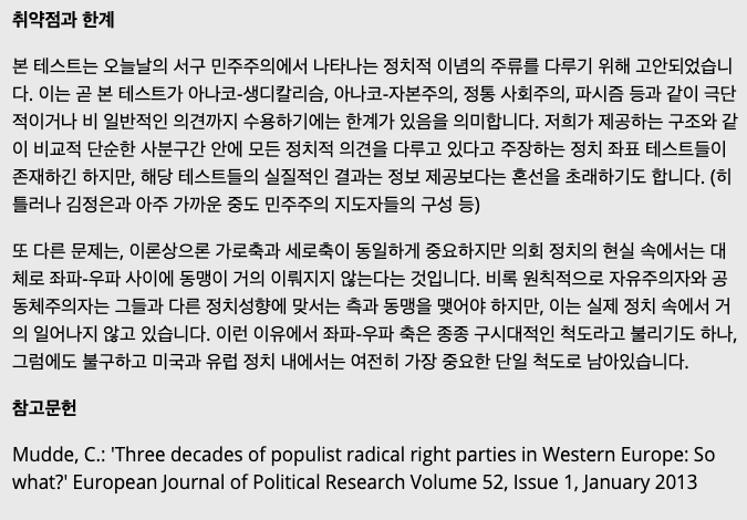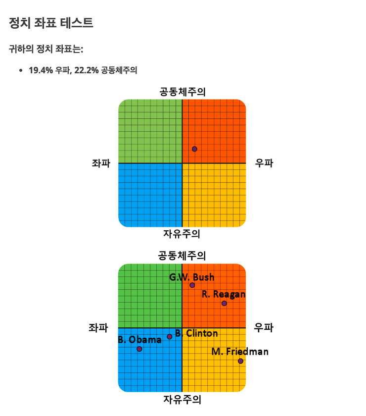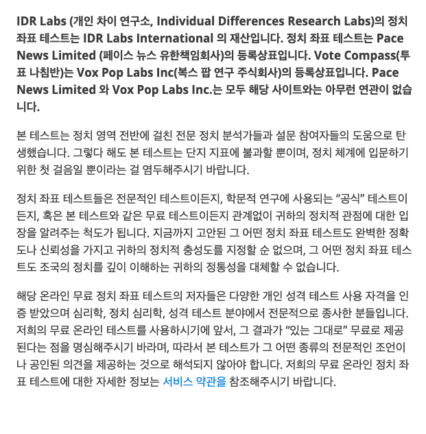 *(참고) 정치 좌표 테스트 사이트 URL :: https://www.idrlabs.com/kr/political-coordinates/test.php