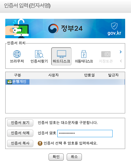 신청 버튼을 클릭했는데 위와 같은 창이 나온다? 그럼 로그인을 하지 않고 진행했다는 것이다. 정부24에 등록된 회원이라면 그냥 회원 신청하기가 간편하다. 다만 회원가입이 안 돼있는 분들은 비회원으로 진행할 텐데, 비회원으로 해도 결국엔 공인인증서가 필요한 경우가 대부분이라 그냥 회원가입을 하고 회원 신청하기를 추천하는 바이다.