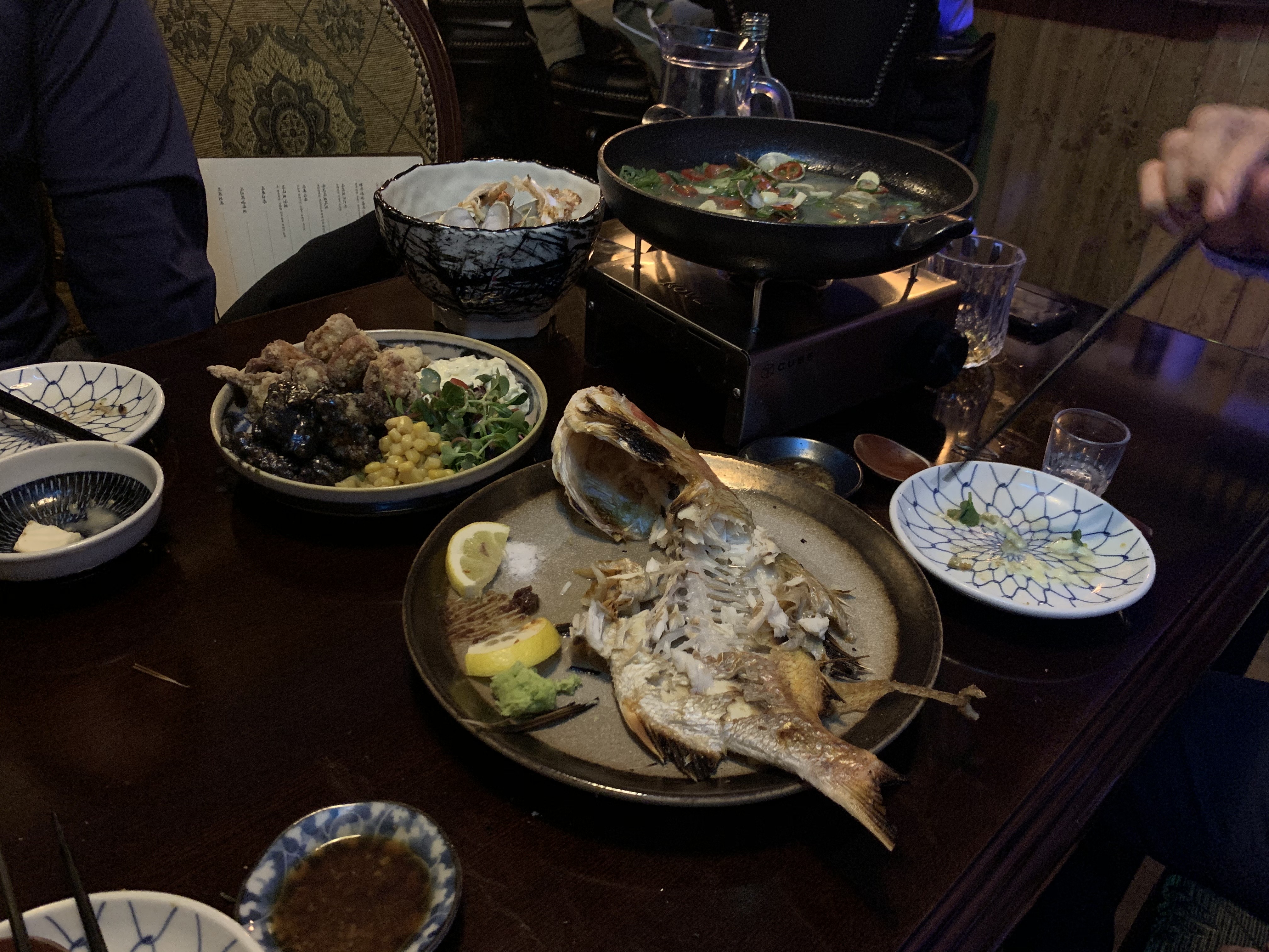 이윽고 바로 두 번째 메인 메뉴가 등장했다. 일단 위 사진을 보는 바와 같이 비주얼로 모든 것을 충분히 압살 할 수 있었다. 바로 '오늘의 구이'인데 이 메뉴는 말 그대로 일마다 다른 고기를 구이로 한 것이기 때문에 싯가에 따라 다르며, 구이 종류도 바뀌는 듯하다. 어제 방문했을 때 오늘의 구이 메뉴는 '돔'이었다. 돔은 필자가 회로만 먹어봤지 구이로는 처음 먹어본다.