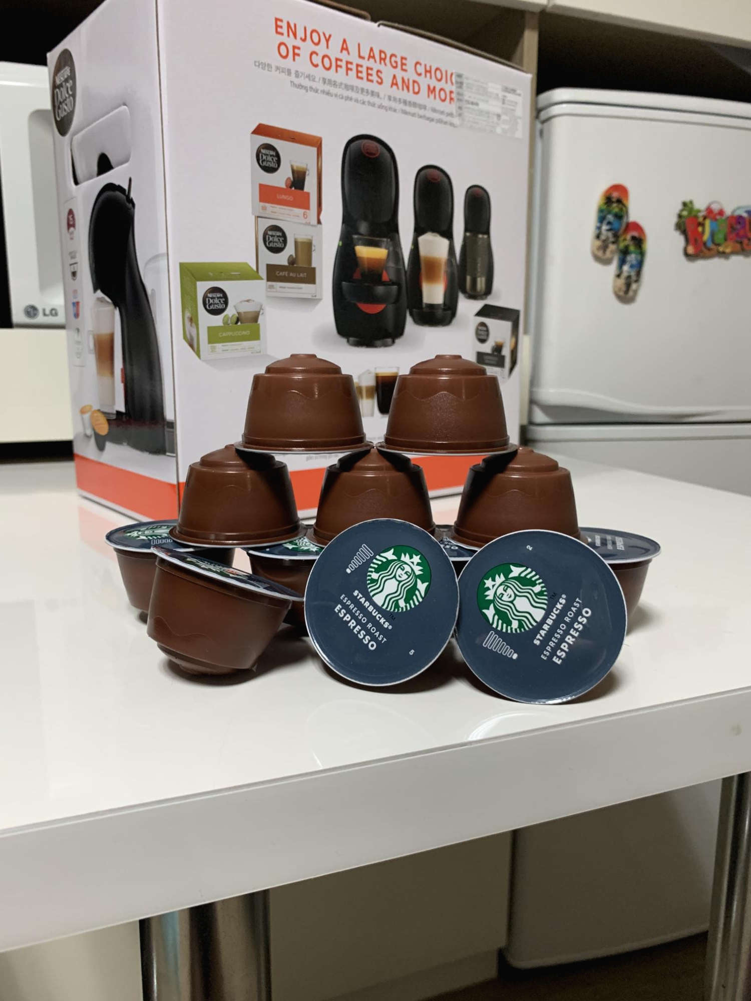 이제 청소도 끝났으니 스근하게 홈카페에서 커피 한 잔을 때려보도록 하겠다. 일단 필자가 혹시나 해서 주문했을 때 또 다른 맛의 캡슐을 하나 추가로 구매했다. 알아보니 캡슐마다 기기에 호환되는 것이 다르고, 맛도 다르니 이 부분은 꼭 제대로 알아보고 구매하기 바란다.