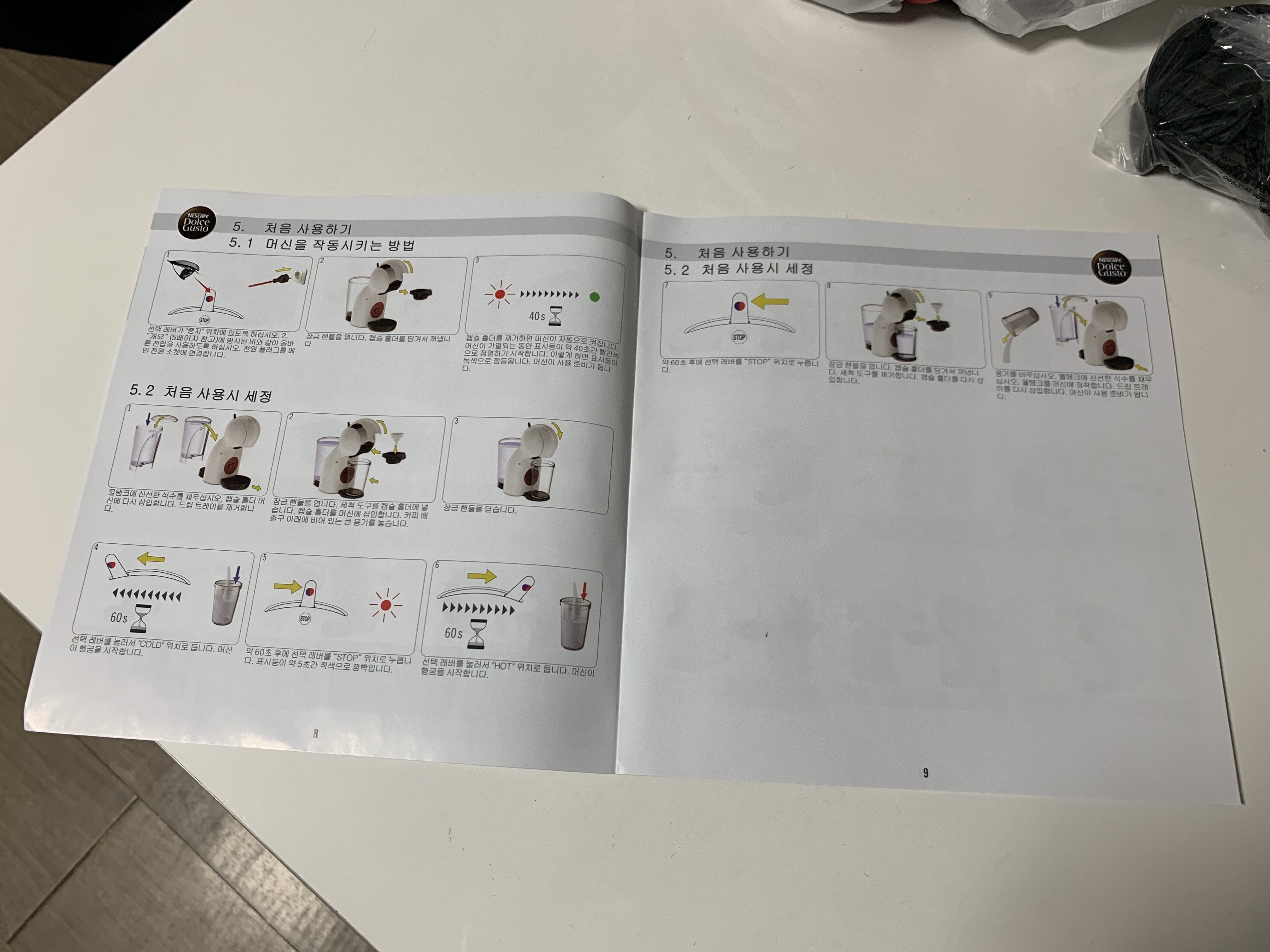 이렇게 코드를 꽂으면 바로 작동이 된다고 해서 바로 커피를 내릴 생각은 하지 말자. 생산 과정 중에서 발생한 먼지, 배송 중에 발생한 먼지 등 때문에 커피가 나오는 관에 먼지나 불순물이 쌓여있을 수도 있다. 설명서에서도 처음 사용 시 사용하기 전 반드시 청소를 하고 난 후에 작동을 하라고 나와있다. 그럼 청소하는 방법은 어떻게 하는 것일까!?