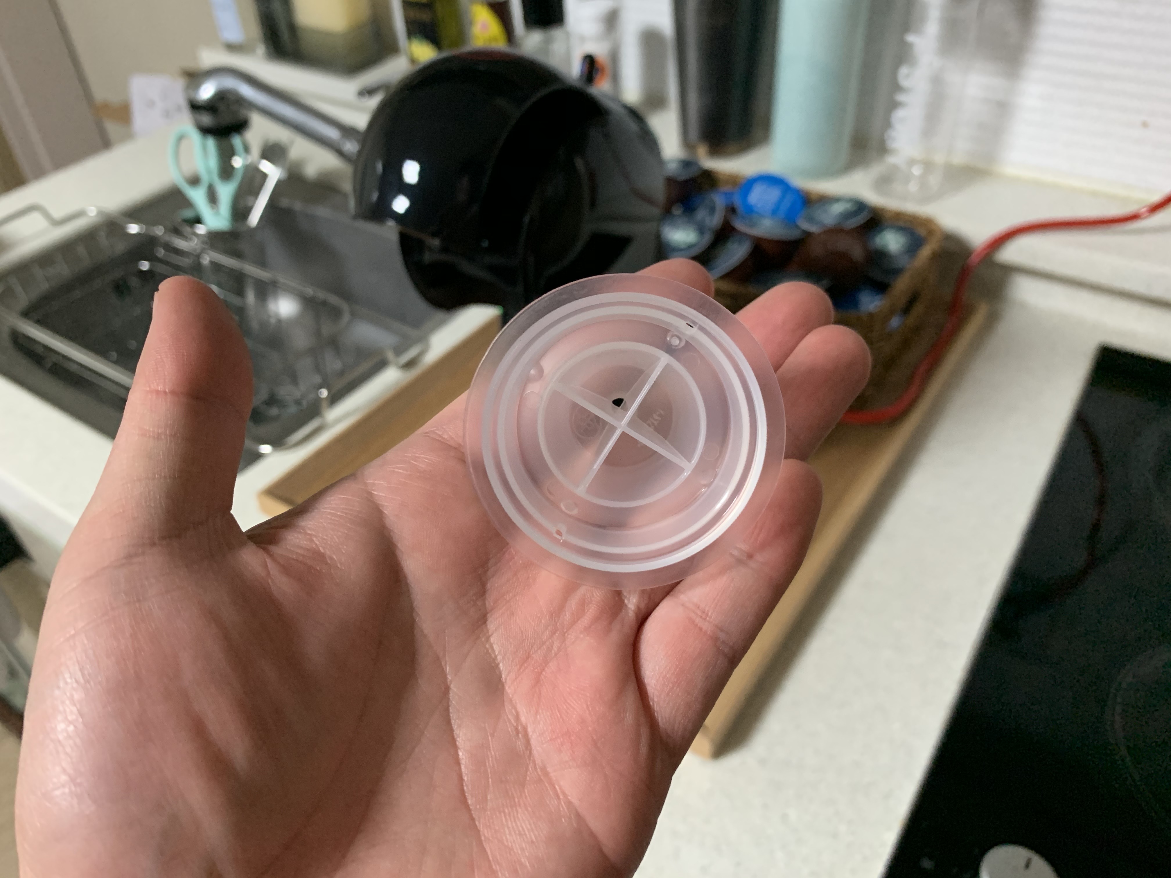 두 번째 구성품은 스타벅스 에스프레소 로스트 캡슐이다. 사실 필자는 캡슐 커피머신이라는 것을 최근에 처음 알았으며, 실제로 커피 캡슐을 보고 만지는 것은 이것을 통해 처음 경험해본 것이다. 사실 그냥 막연하게는 캡슐 커피라고 하길래 젤리 포장된 것 마냥 흐물흐물하고 안에는 액체가 다량 들었을 거 같은 느낌이었다. 하지만 실제로 보니 플라스틱은 꽤나 단단했고, 뒷구멍에는 물이 나오는 구멍인 듯 뚫려있는 독특한 구조였다. 그리고 안에는 고체의 무언가가 들어있는 듯했다.