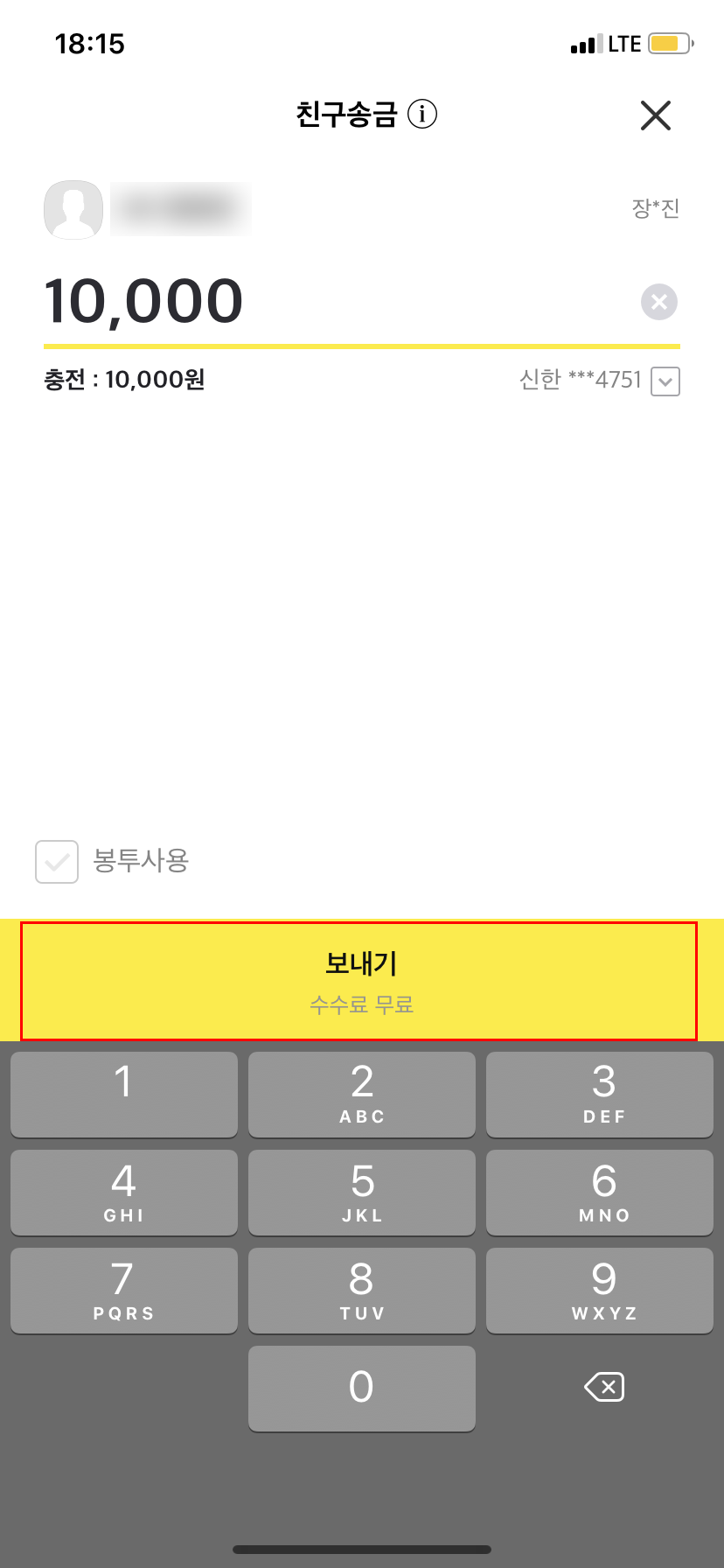 각설하고 필자는 카카오페이 송금을 하고자 하니 '보내기' 버튼을 택한 후에 이제 보낼 금액을 입력해주고 '보내기' 버튼을 탭 해주면 된다. 참고로 아이폰 X 이상의 유저들은 FACE ID 인증을, 아이폰 8까지의 유저들은 지문 인식을 통해 송금을 할 수 있다.