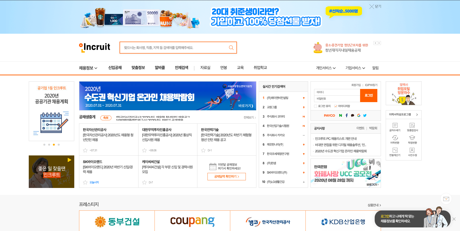 실시간 취업정보 인크루트