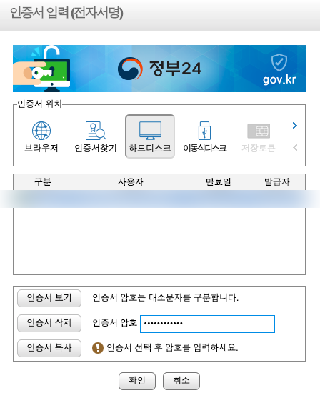 그럼 회원/비회원 신청 가능한 서비스라는 안내 창이 등장한다. 회원의 경우 그냥 공인인증서 로그인으로 스근하게 넘어가지만 비회원의 경우 비회원 인증에 대한 절차를 따로 한 번 더 거치게 된다. 더불어 비회원이라 하더라도 공인인증서를 사용할 수 있는 경우가 있을 수 있다고 한다. 이런 경우라면 미리 회원가입과 공인인증서를 받아놓고 인터넷 발급받는 것이 간편할 듯하다.