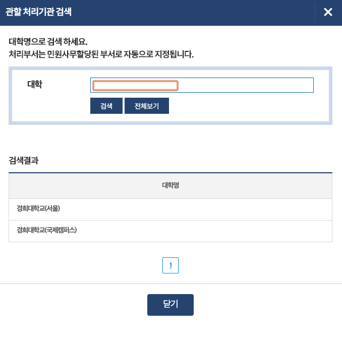 학교의 경우 '학교 검색' 버튼을 눌러 자신의 출신 학교를 검색하도록 하자. 필자는 경희대학교 서울캠퍼스 경영학과를 학사로 졸업했기 때문에 검색창에 경희대학교로 검색해주었다. 그럼 서울 캠퍼스와 수원 캠퍼스 2곳이 등장하는데, 자신의 캠퍼스를 선택해주면 끝.