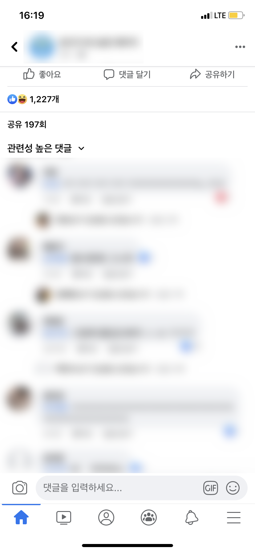 방법은 간단하다. 내가 댓글을 살펴보고 싶은 게시물의 댓글창을 탭 해보자. 그럼 좌측 화면과 같이 댓글이 쫙~ 나올 텐데, 거기서 중간에 보면 '관련성 높은 댓글'이라는 메뉴가 보일 것이다. 해당 메뉴를 탭 해보면 '댓글 필터링'이라고 해서 기본 설정으로 되어 있는 '관련성 높은 댓글'과 '날짜 내림차순', '모든 댓글'의 메뉴가 존재한다. 거기서 우리는 '모든 댓글' 메뉴를 탭 해주면 설정법이 변경된다. 그럼 이전에는 관련성 높은 댓글이 우선적으로 보였다면, 설정 이후에는 모든 댓글이 다 보이게 된다. 이렇게 하면 페이스북(페북) 댓글 안보임 문제는 스근하고 노곤하게 해결할 수 있다.