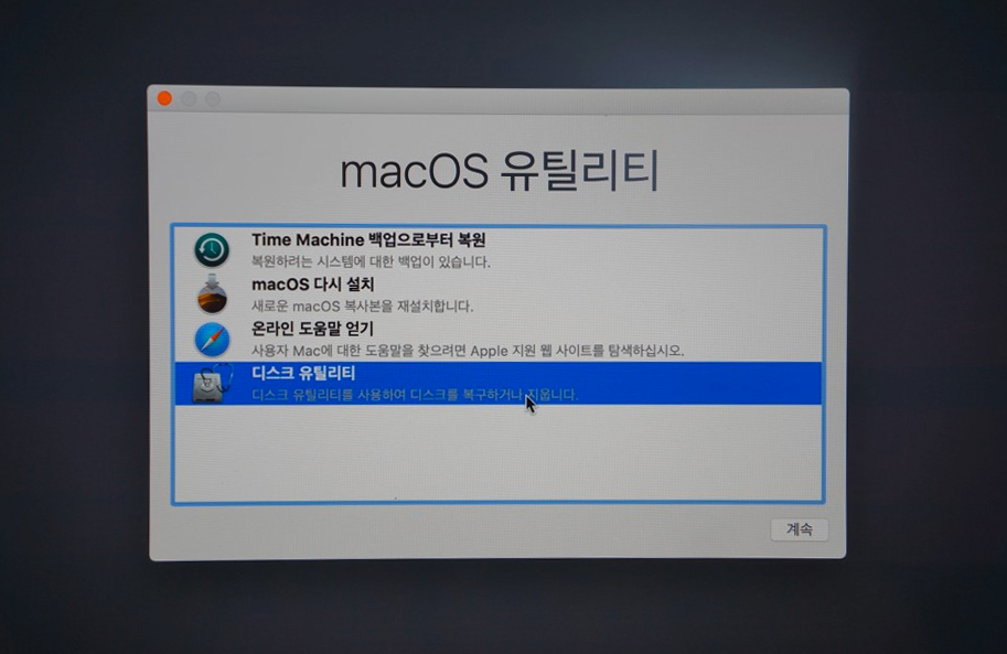 4) 디스크 유틸리티 : 운영체제는 그대로 두고 저장 디스크를 지우거나 복구할 수 있다.