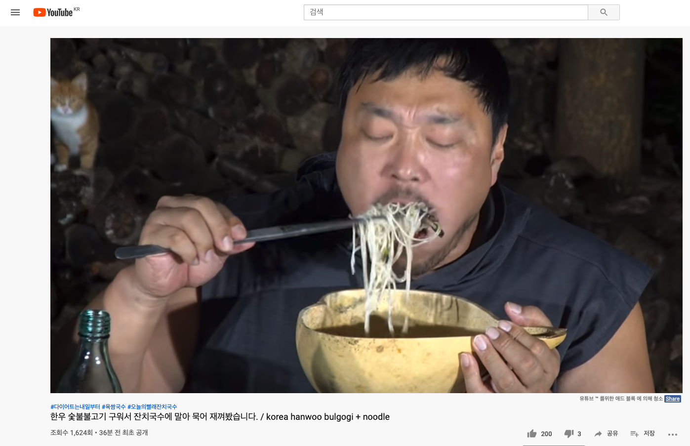 필자는 유튜브 크리에이터 '산적TV'의 굽남이님의 영상 중 하나를 다운로드해보고자 한다. 참고로 필자가 가장 많이 즐겨보는 크리에이터 중 한 명으로 거친 마초와 현대판 임꺽정 같은 체구에 귀여운 매력을 갖추신, 그리고 음식을 매우 복스럽게 드시는 굽남이님의 매력에 흠뻑 빠져서 요즘 거의 1일 1영상을 하고 있다.