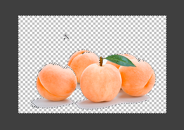 그럼 과일을 제외하고 배경부분에 점선 표시로 영역이 표시될 것이다. 그리고 그냥 여기서 'delete'만 눌러주면 된다. 그럼 좌측 사진과 마찬가지로 배경이 사각형 모양으로 바뀌는데 배경이 정상적으로 지워지고 투명 배경으로 변했다는 것을 알려주는 것이다.