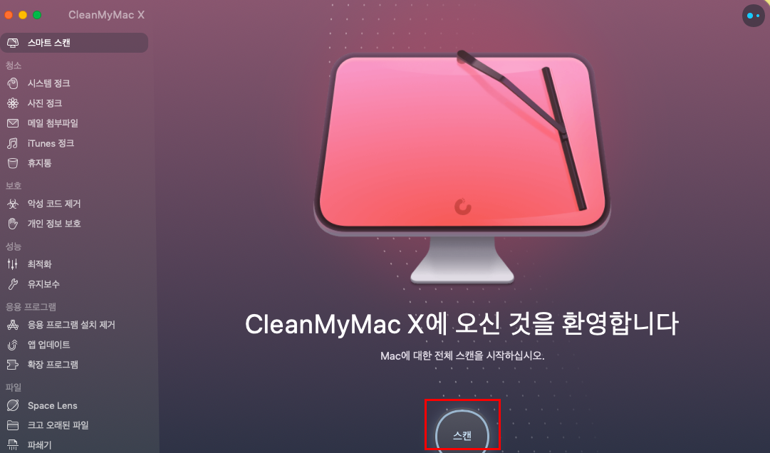 메인화면 아래에 '스캔'이라는 동그라미 버튼이 있을 것이다. 만약 자신의 맥북, 혹은 맥의 속도가 느려지고, 정리가 필요하다고 느낄 때 한번씩 해주면 괜찮아지는 거 같다. 필자는 보통 1~2주마다 1번씩 스캔을 통해 정리를 해주는데, 여러분들도 일정 주기마다 정리해주는 것을 권장한다.