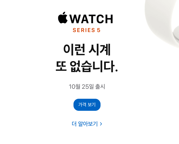 일단 애플워치5의 출시 예정일은 '10/25 (금)'으로 예정되어 있다. 현재 필자가 포스팅하고 있는 날짜, 10월 24일 저녁 7시 5분경을 기준으로 한다면 출시까지 몇 시간 안 남은 상황이다. (필자다 포스팅하면서 인지했다. 너무 놀랍다.) 25일에 출시된다고 하니 모두들 참고할 수 있도록 하자. 아마 내일이면 실검이니 뭐니 아주 핫해질 거 같다.