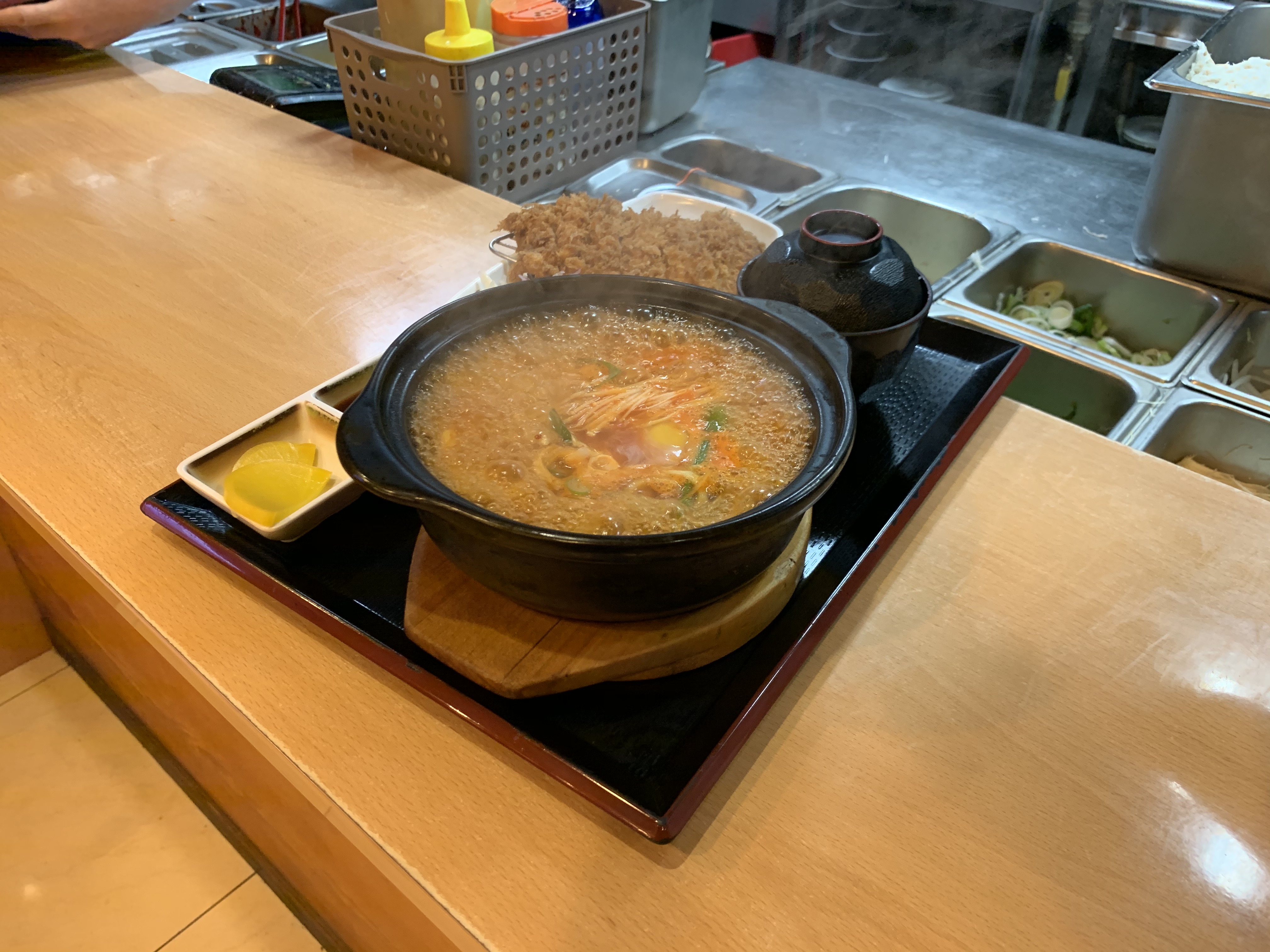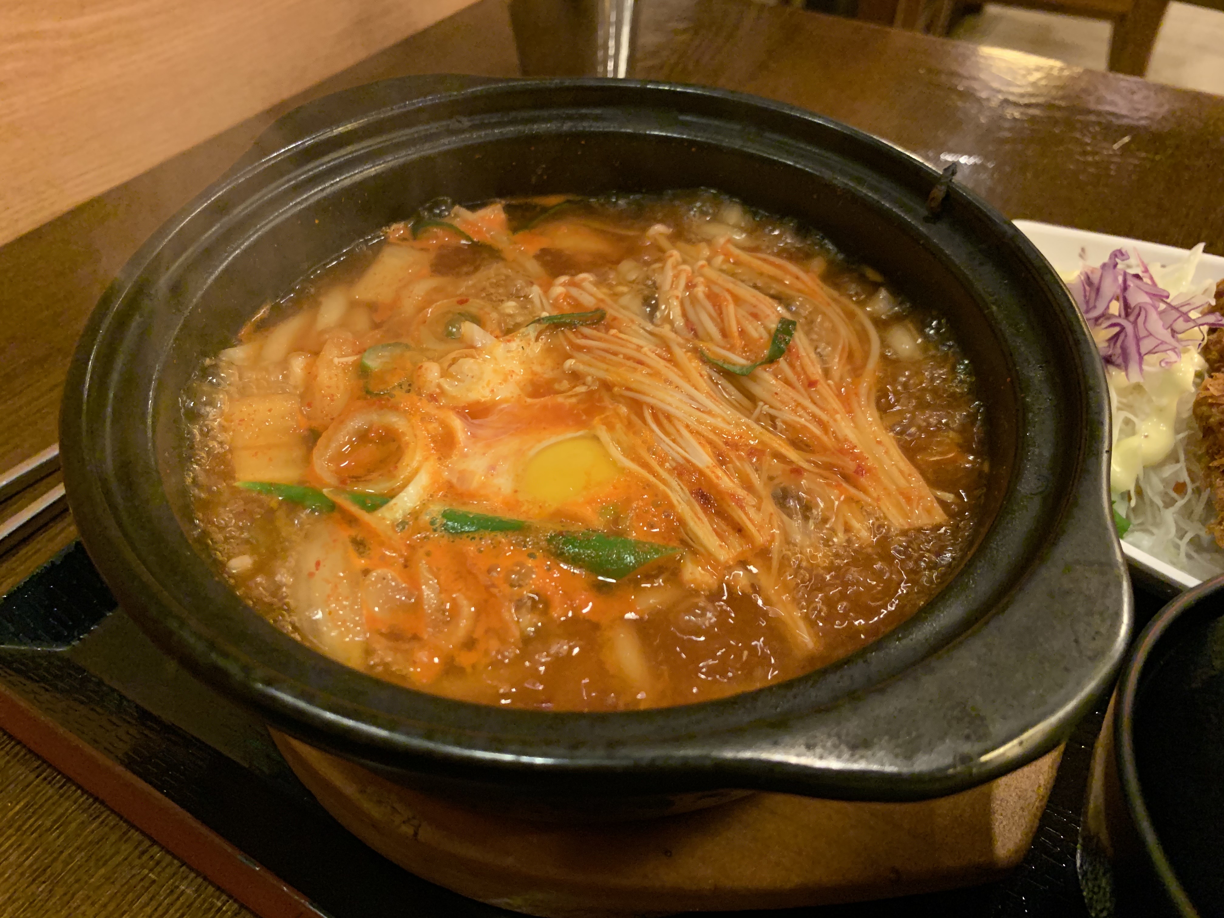 점수를 매겨보는 게 의미가 있나 싶다. 왜냐면 김치 나베만 놓고 보면 5점 만점에 5점 만점이기 때문. 칼칼함과 더불어 정식으로 나온 돈까스와 케미도 좋다. 밥이든 면이든 어떻게 먹어도 조화롭게 잘 어울릴 국물 덕분인지 먹는 내내 맛있게 먹을 수 있는 음식인 거 같다.