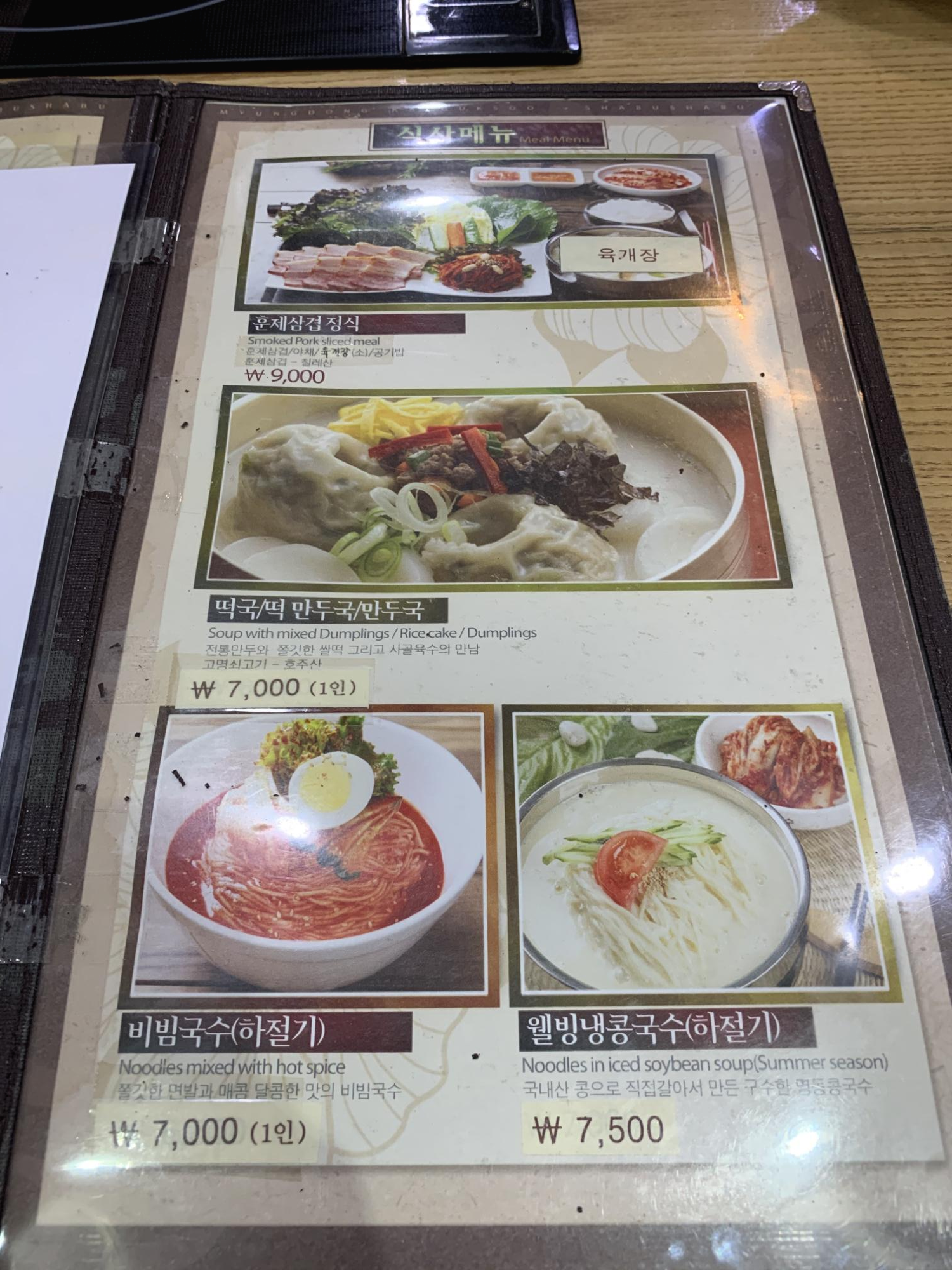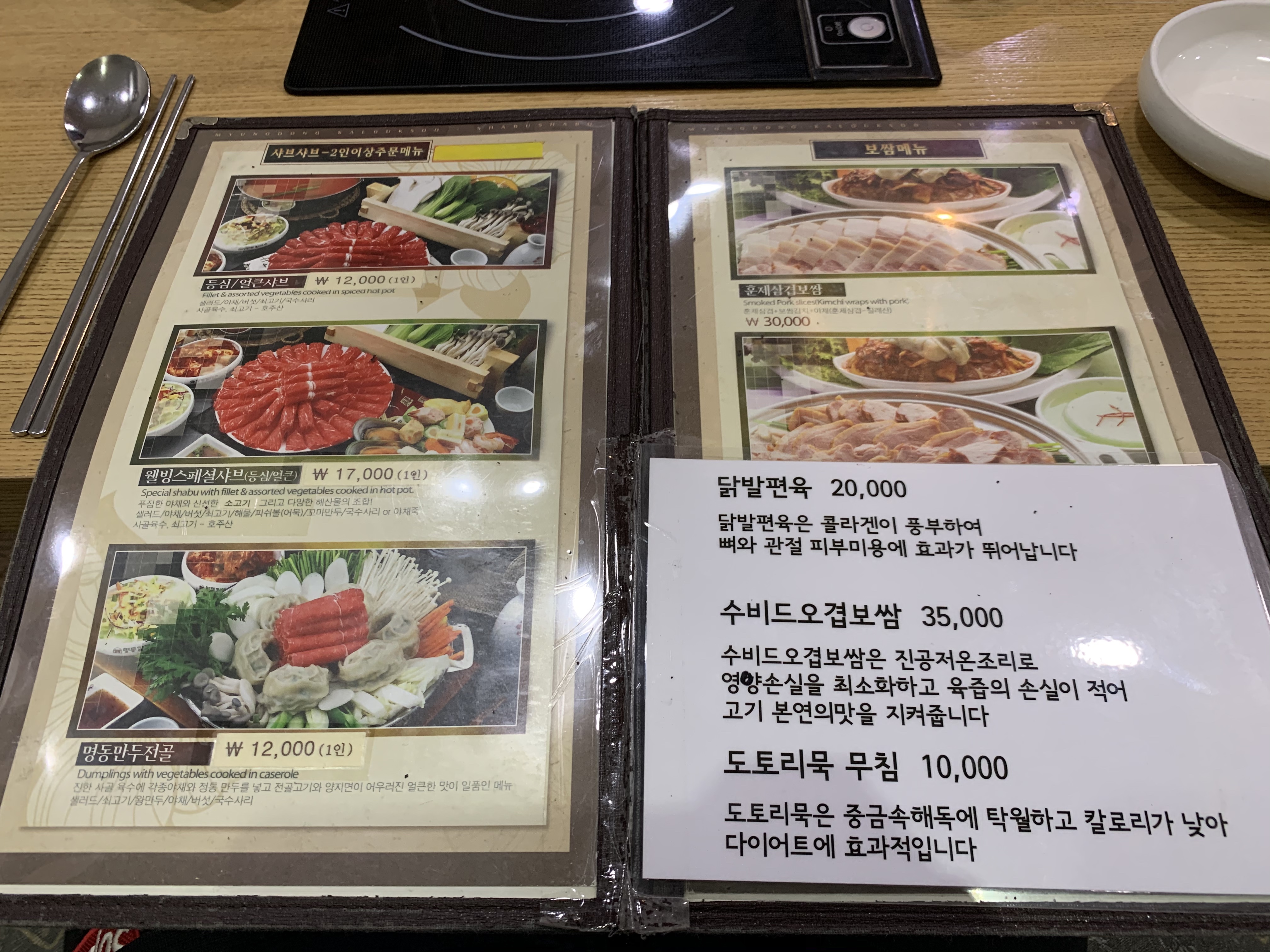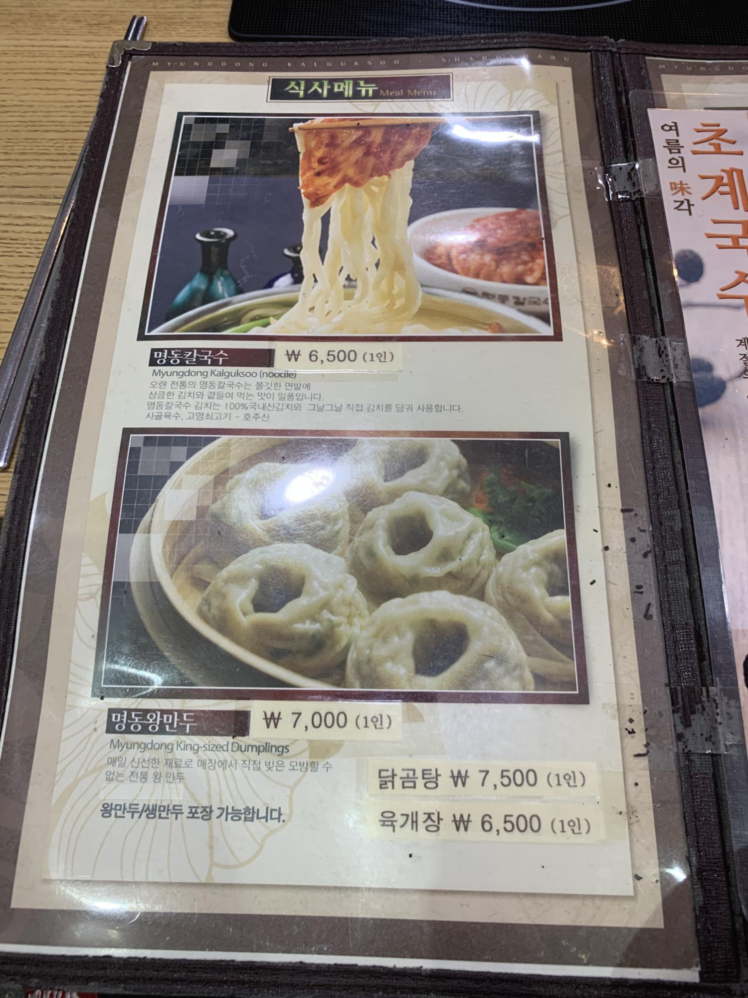 명동칼국수 샤브샤브가 음식점 이름이니 칼국수와 샤브샤브만 있겠지라는 생각을 버려줄 수 있는 메뉴판을 살펴보자. 기본적으로 명동칼국수를 판매하고 있으며, 만두와 샤브샤브, 그리고 닭곰탕, 육개장, 하절기용 메뉴까지 다양한 메뉴를 판매하고 있다. 선정릉역 맛집으로 점심에 먹기 좋은 메뉴들과 더불어 샤브샤브류도 판매하고 있기 때문에 회식장소로도 매우 적합한 곳이 아닐까 생각이 든다.