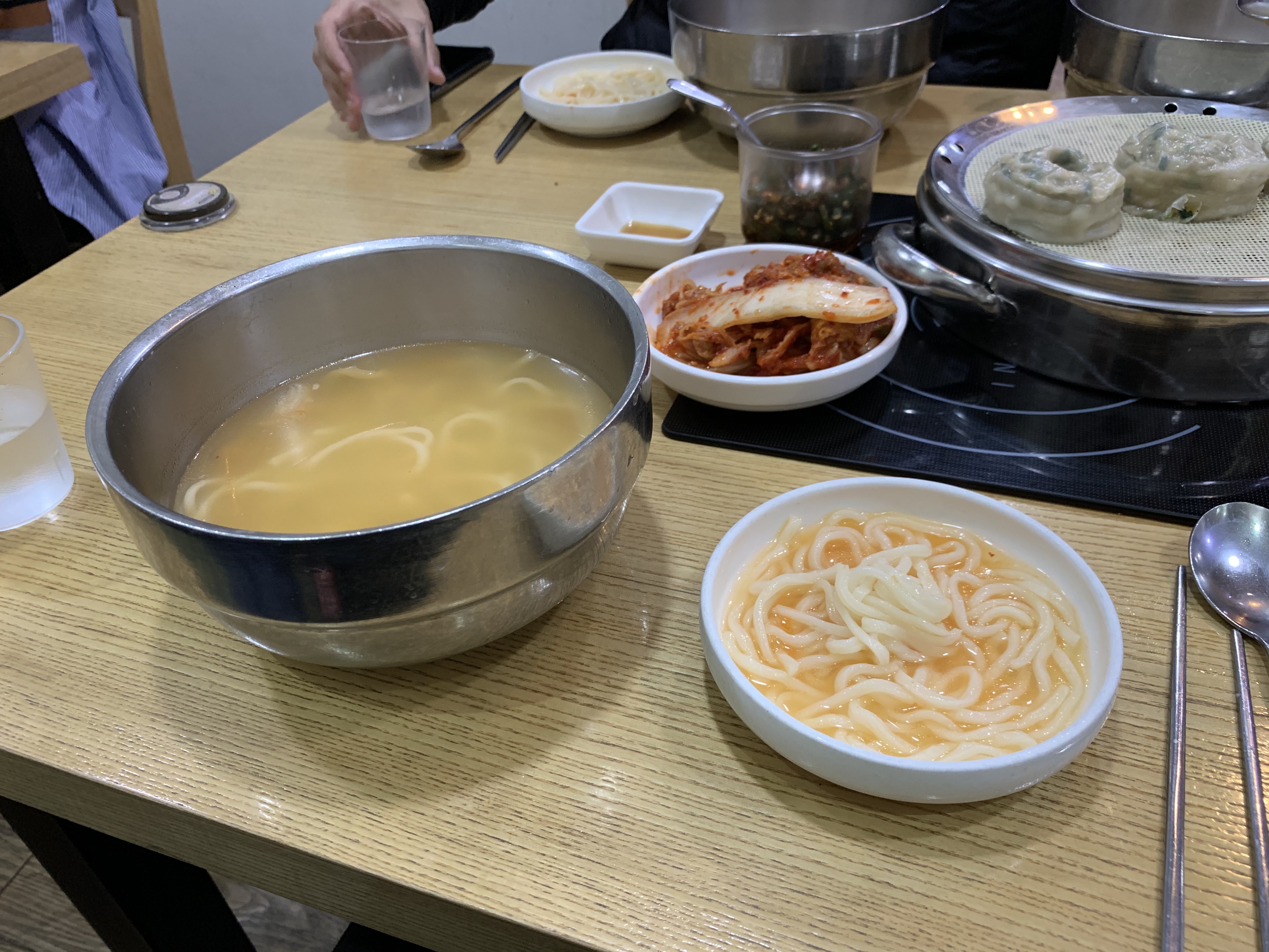 이 날 따라 배가 너무 고픈 나머지 한 그릇을 다 먹는데 10분 컷 했다. 사이드 디쉬인 왕만두와 김치, 그리고 칼국수까지 모든 조화가 옴팡지게 잘맞는 조합인 거 같다. 여기서 꿀팁을 하나 주자면, 만약 한 그릇을 다 먹었는데 성에 안찬다 싶으면 공깃밥을 달라고 하자. 당연히 공깃밥 1그릇에 천원 정도 하겠지 생각하겠지만, 칼국수를 시킬 때 밥을 추가하는 것은 '무료'로 제공된다. 물론 양이 일반 공깃밥에 절반 정도되는 양만 주지만, 그래도 반공기 이상을 무료로 주는 것은 가성비가 다 차다 못해 흘러넘치는 수준이 아닐까 생각한다.